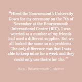 Hired items will arrive at your delivery address at least 2 days before the ceremony date you select at checkout. A prepaid return label and instructions will be included for sending them back.