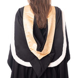 Full set, consisting of a cap, gown and hood for use by bachelors students graduating from Newcastle University.