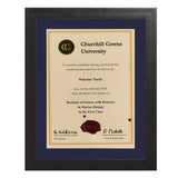 All frames are sized specifically for UK degree certificates and come with a coloured mount card, offered in a range of colours so you can match your frame to compliment your degree certificate.