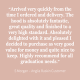 Full set, consisting of a cap, gown and hood for use by masters students graduating from Anglia Ruskin University.